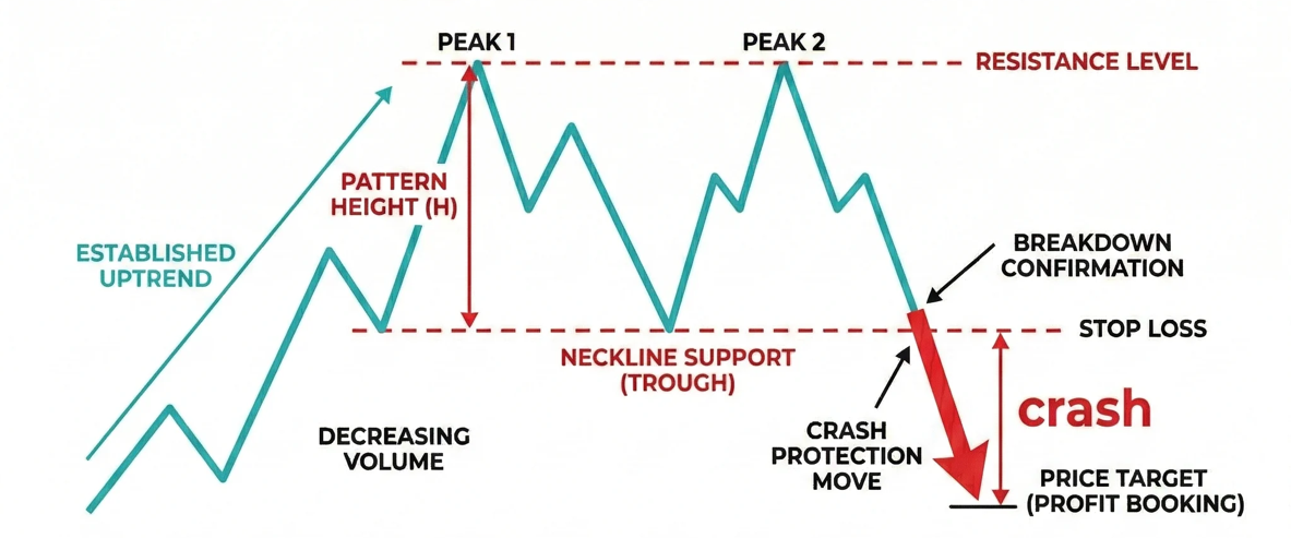 🚦 The Exit Signal: Do not panic-sell just because the price hits the second top. The pattern is only confirmed when a daily candlestick completely closes below the neckline. That breakdown is your definitive signal to exit.