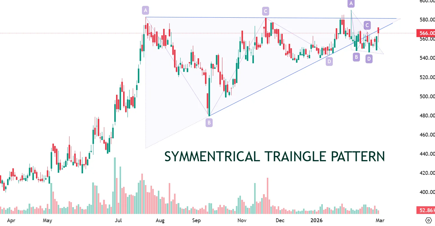 In the Nepal Stock Exchange (NEPSE), some of the biggest price movements happen right after periods of intense boredom. When a stock stops trending and instead starts squeezing into a tighter and tighter price range, it forms a Symmetrical Triangle.